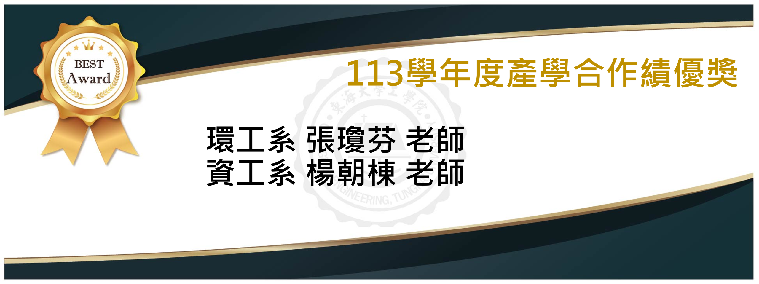 產學合作績優獎:環工系張瓊芬老師、資工系楊朝棟老師